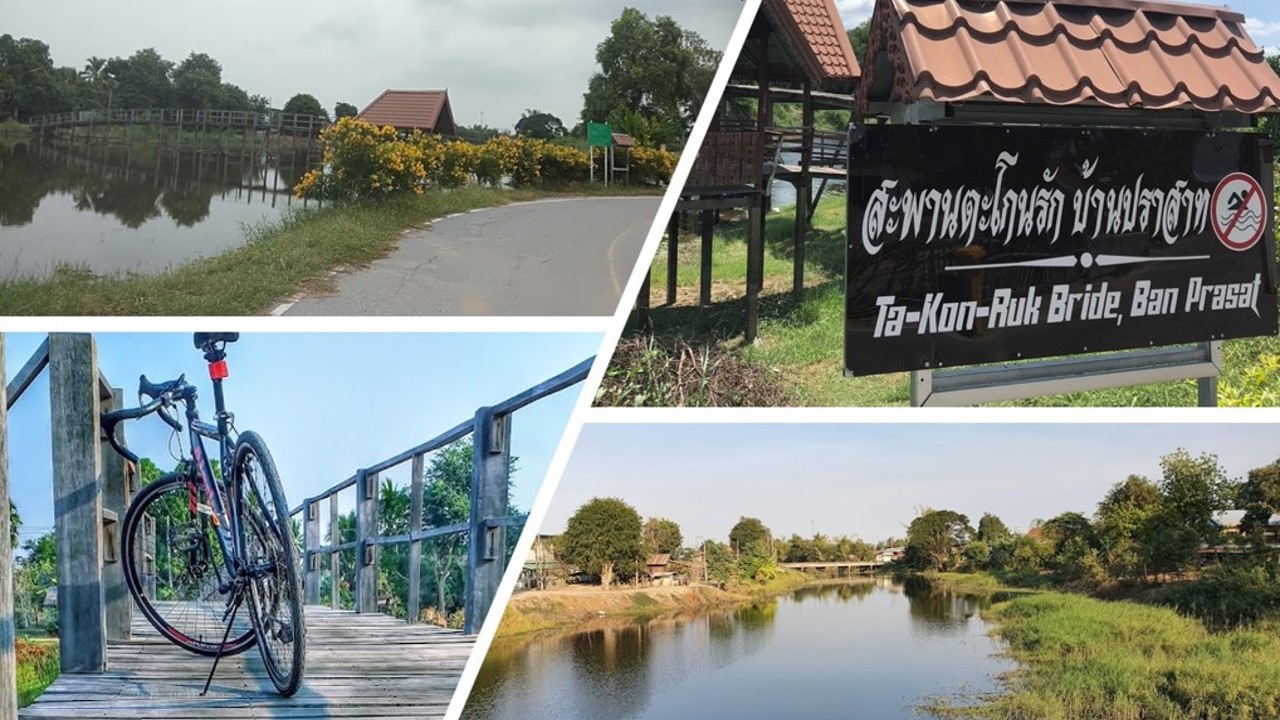 สะพานไม้เก่าแก่นับร้อยปี ที่ไว้ข้ามลำน้ำธารปราสาท ซึ่งเป็นลำน้ำศักดิ์สิทธิ์ 1 ใน 9 ของแหล่งน้ำที่สำคัญของประเทศไทย คนเฒ่าคนแก่เล่าว่า สมัยก่อนหนุ่มสาวเวลาจีบกันก็ตะโกนบอกข้ามลำน้ำธารปราสาทกัน